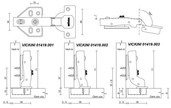 🎯 Các phiên bản của bản lề VICKINI 01419