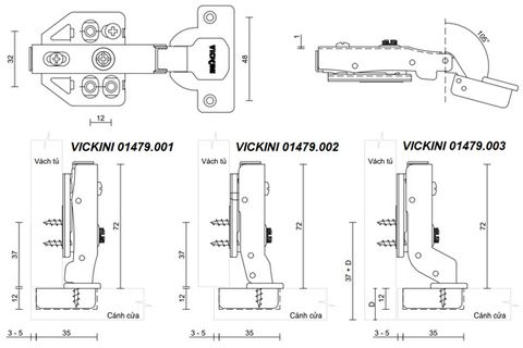 🎯 Các phiên bản của bản lề bật giảm chấn VICKINI 01479