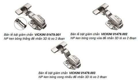 🔹 1. Bản lề bật giảm chấn VICKINI 01479.001 NP – Ken bóng thẳng đế nhấn 3D