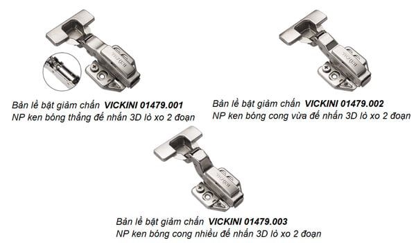 🔹 2. Bản lề bật giảm chấn VICKINI 01479.002 NP – Ken bóng cong vừa đế nhấn 3D