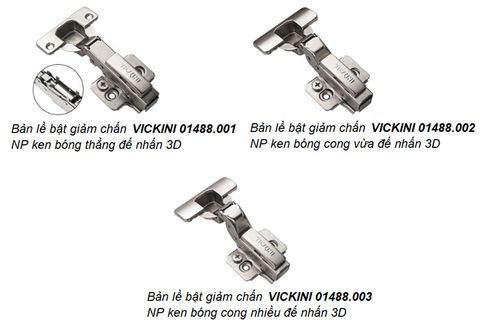 🔹 3. Bản lề bật giảm chấn VICKINI 01488.003 NP – Ken bóng cong nhiều đế nhấn 3D