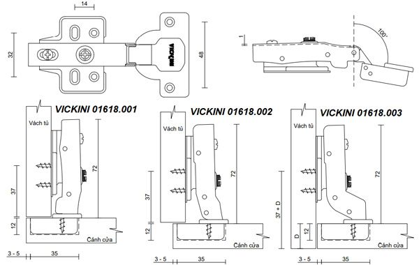 🎯 Các phiên bản của bản lề bật giảm chấn VICKINI 01618