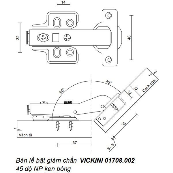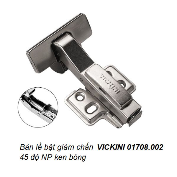 - Bản lề bật giảm chấn VICKINI 01708.002-45 độ NP ken bóng