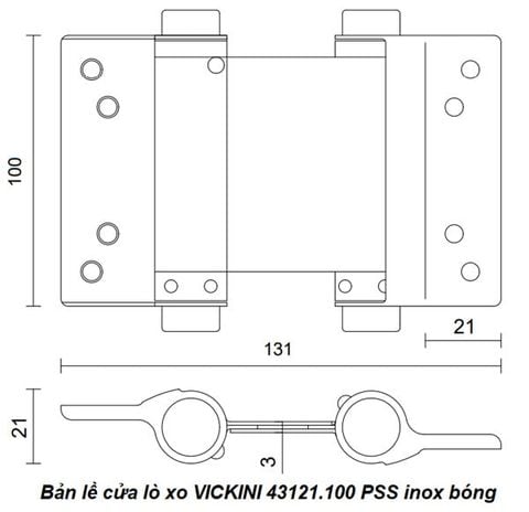 - Bản lề cửa lò xo VICKINI 43121.100 PSS inox bóng