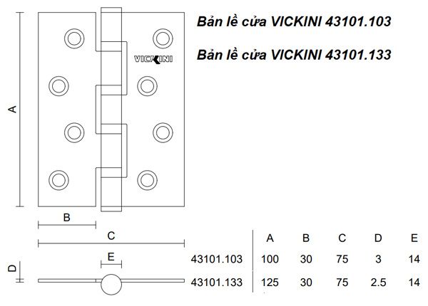 🔧 Bản Lề Cửa VICKINI 43101.103 – Sự lựa chọn hoàn hảo cho mọi loại cửa, mang đến sự an tâm và tiện nghi cho ngôi nhà của bạn.