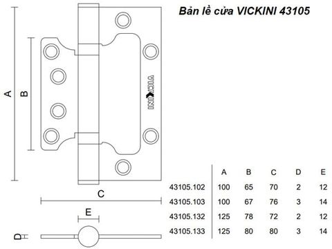 🔧 Bản Lề Cửa VICKINI 43105.103 – Lựa chọn tuyệt vời cho mọi công trình, đảm bảo chất lượng vượt trội, cửa luôn chắc chắn và hoạt động mượt mà.