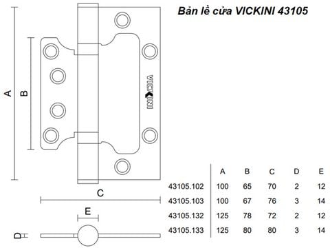 🔧 Bản Lề Cửa VICKINI 43105.103 – Lựa chọn tuyệt vời cho mọi công trình, đảm bảo chất lượng vượt trội, cửa luôn chắc chắn và hoạt động mượt mà.