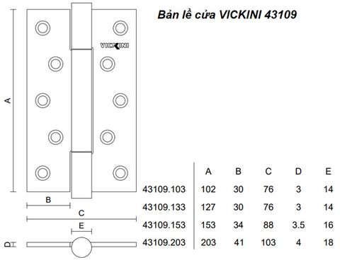 - Bản lề cửa VICKINI 43109.103 MBG vàng xước mờ 201, 1T dày 3.0mm