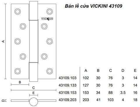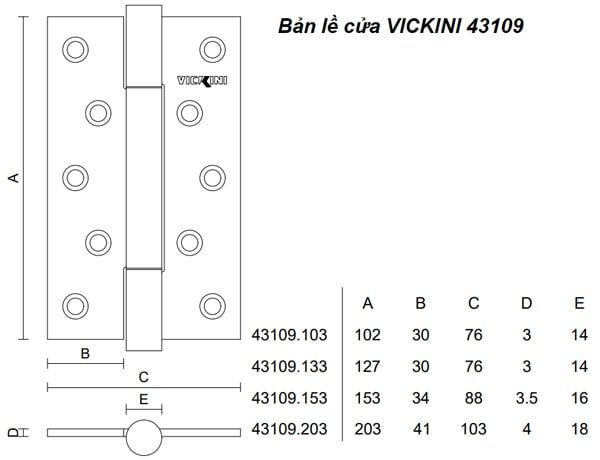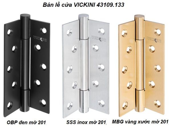 - Bản lề cửa VICKINI 43109.133 SSS inox mờ 201, 1.25T dày 3.0mm