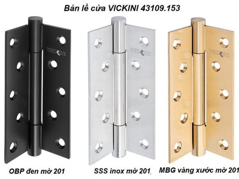 - Bản lề cửa VICKINI 43109.153 SSS inox mờ 201, 1.5T dày 3.0mm