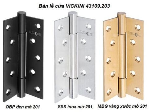 - Bản lề cửa VICKINI 43109.203 SSS inox mờ 201, 2T dày 3.0mm