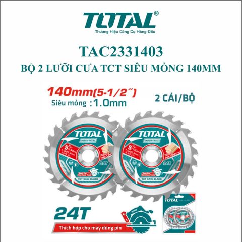 Bộ 2 lưỡi cưa TCT siêu mỏng 140mm Total TAC2331403