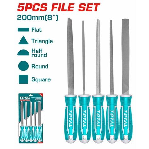 Bộ 5 giũa thép 8 inch/200mm Total THT918516 – Đa năng, bền bỉ, đáp ứng mọi nhu cầu mài giũa