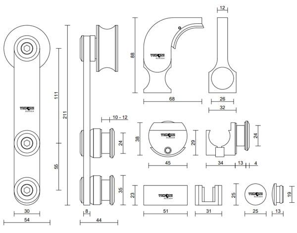 - Bộ bánh xe kẹp kính VICKINI 62001.001 SSS inox mờ