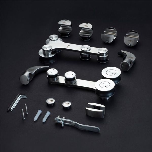 - Bộ bánh xe kẹp kính VICKINI 62004.001 SSS inox mờ