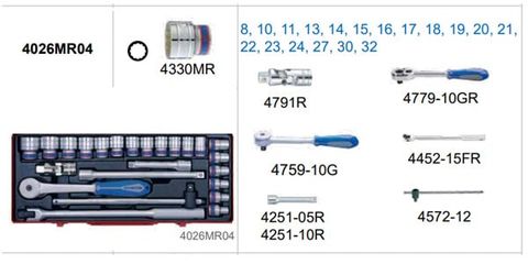 🛡️ THÔNG SỐ CHÍNH – BỘ TUÝP 4026MR04 (1/2", 24 CHI TIẾT, TUÝP 12 CẠNH)