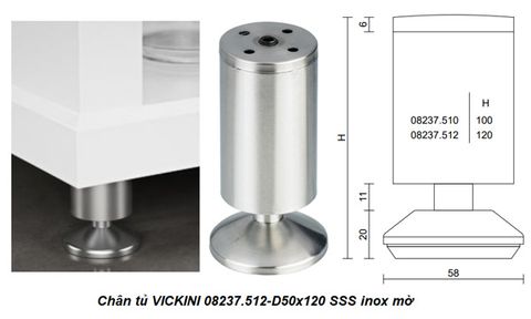 🔑 Thông Số Nổi Bật Của Chân Tủ VICKINI 08237.512-D50x120 SSS Inox Mờ: