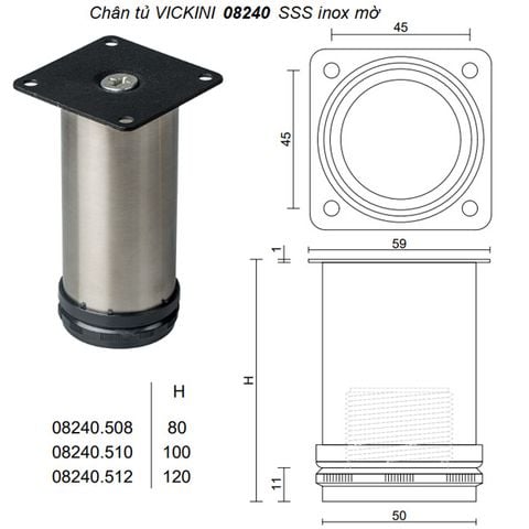 🔑 Thông Số Nổi Bật Của Chân Tủ VICKINI 08240.510-D50x100 SSS Inox Mờ:
