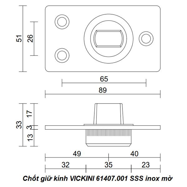 Công ty TNHH Nguyên Khuê cung cấp Chốt giữ kính VICKINI 61407.001 SSS inox mờ chính hãng với giá hợp lý và dịch vụ giao hàng nhanh chóng.