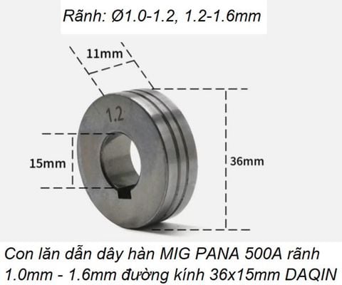 - Con lăn dẫn dây hàn MIG PANA 500A rãnh 1.0mm và 1.2mm đường kính 36x15mm DAQIN BXP4