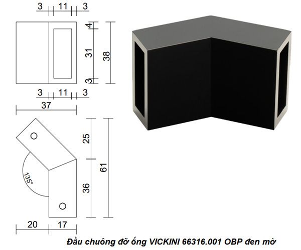 🔧 Đầu chuông đỡ ống VICKINI 66316.001 OBP đen mờ - Giải Pháp Tối Ưu Cho Lan Can Kính Góc 135 Độ