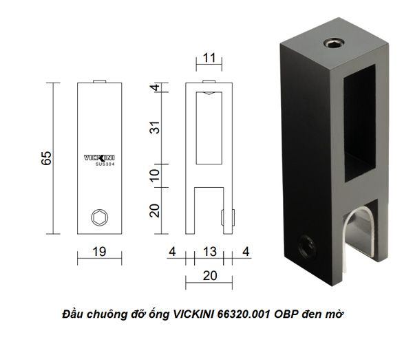 - Đầu chuông đỡ ống VICKINI 66320.001 OBP đen mờ