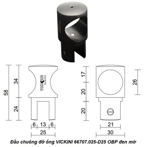 - Đầu chuông đỡ ống VICKINI 66707.025-D25 OBP đen mờ