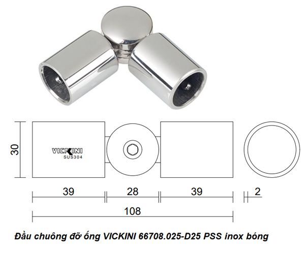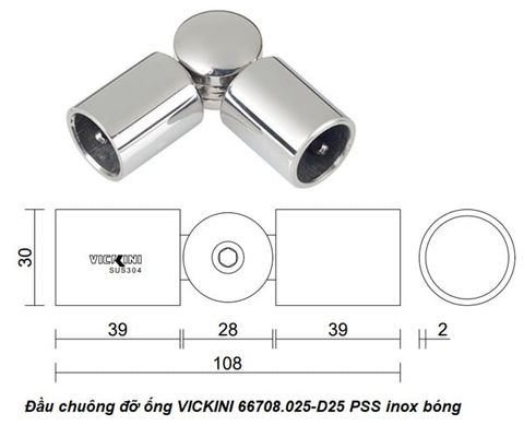 - Đầu chuông đỡ ống VICKINI 66708.025-D25 PSS inox bóng