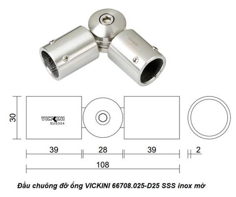 🔩 Đầu chuông đỡ ống VICKINI 66708.025-D25 SSS inox mờ – Giải Pháp Hoàn Hảo Cho Lan Can Kính Góc