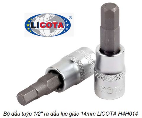 - Đầu tuýp 1/2 inch ra đầu lục giác 14mm LICOTA H4H014
