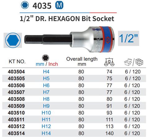 🔩 ĐẦU TUÝP LỤC GIÁC KINGTONY 4035 – CHUẨN 1/2"