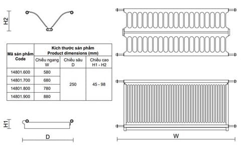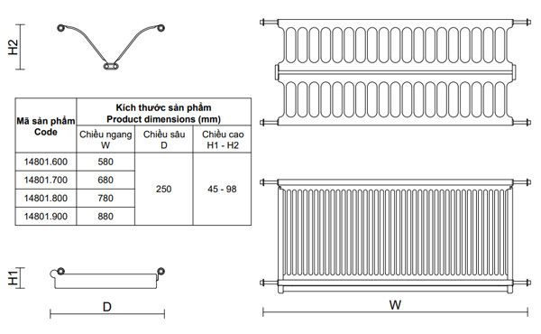 - 580mm, 680mm, 780mm, 880mm (tương đương 600mm, 700mm, 800mm và 900mm).