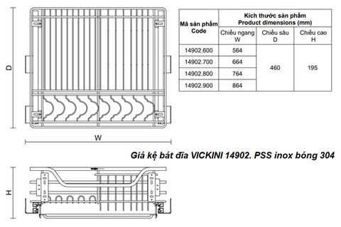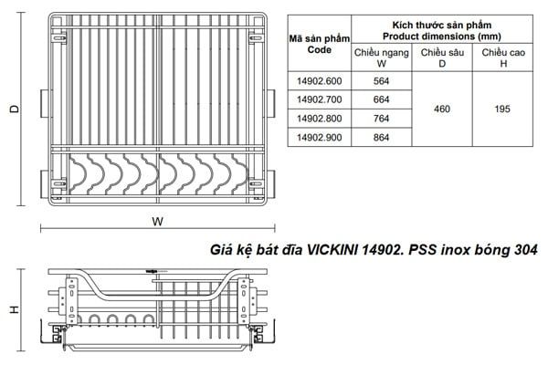 - Giá kệ bát đĩa VICKINI 14902.700 PSS inox bóng 304