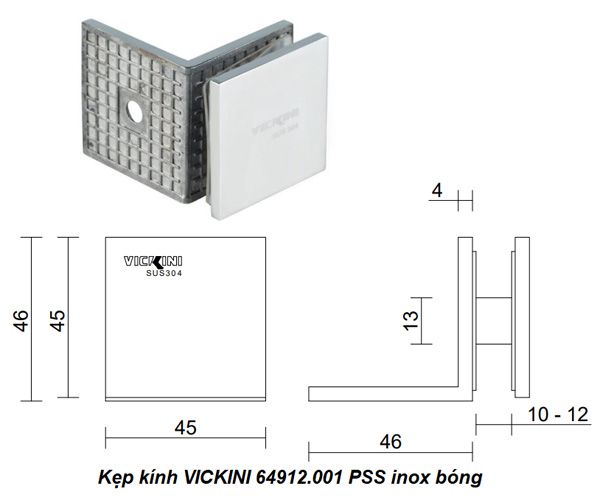 - Kẹp kính VICKINI 64912.001 PSS inox bóng
