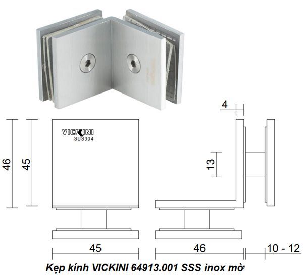 🔒 Kẹp kính VICKINI 64913.001 SSS inox mờ – An Toàn và Sang Trọng Cho Cửa Kính Của Bạn
