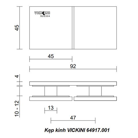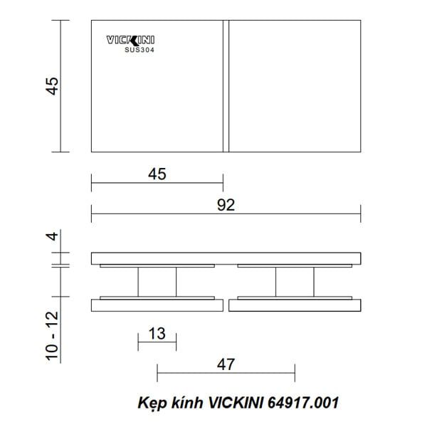 - Kẹp kính VICKINI 64917.001 SSS inox mờ