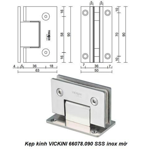 - Kẹp kính VICKINI 66078.090 SSS inox mờ