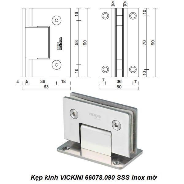 🚪 Kẹp kính VICKINI 66078.090 SSS inox mờ – Giải Pháp Hoàn Hảo Cho Cửa Kính Chắc Chắn và Thẩm Mỹ