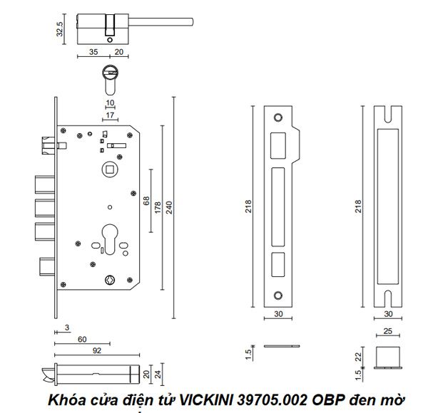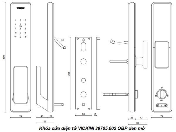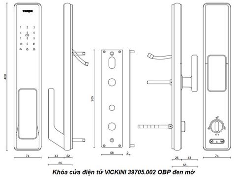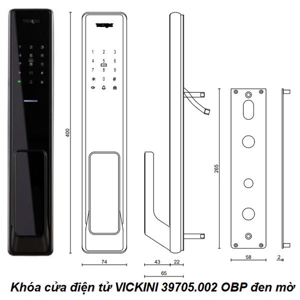 - Khóa cửa điện tử VICKINI 39705.002 OBP đen mờ