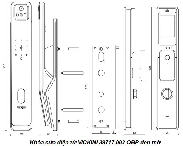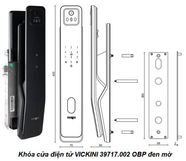 📌 Khóa Cửa Điện Tử VICKINI 39717.002 OBP Đen Mờ với các phương thức mở khóa hiện đại như khuôn mặt, vân tay tĩnh mạch, mã số, thẻ từ, chìa cơ và app điện thoại là giải pháp lý tưởng cho những ai tìm kiếm sự tiện lợi, an toàn và bảo mật tối ưu cho ngôi nhà của mình.