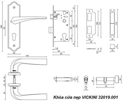 - Khóa cửa nẹp VICKINI 32019.001 OBP đen mờ, ruột chốt
