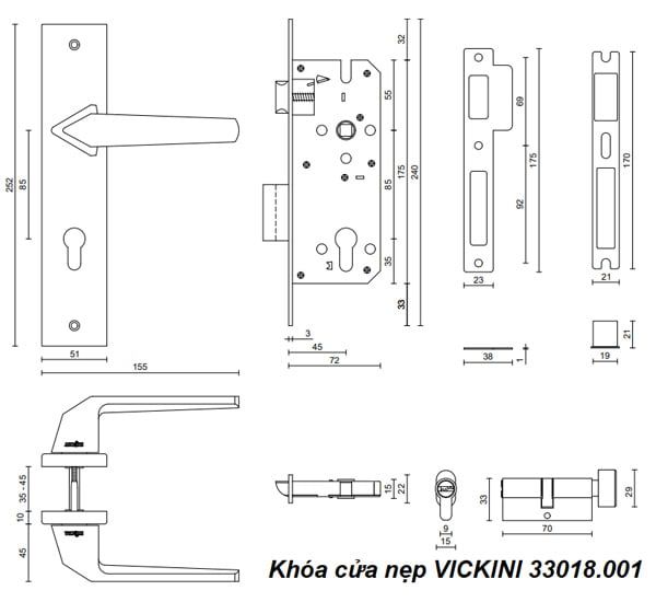 💡 Khóa Cửa Nẹp VICKINI 33018.001 Ruột Chốt là lựa chọn lý tưởng cho các loại cửa kim loại, gỗ và nhựa có độ dày từ 35mm đến 45mm và độ rộng đố cửa trên 80mm. Sản phẩm này thích hợp cho các cửa phòng, cửa chính, cửa phòng ngủ, cửa phòng tắm hay cửa thông phòng, giúp tăng cường sự bảo mật mà vẫn giữ được vẻ đẹp thẩm mỹ cho không gian.
