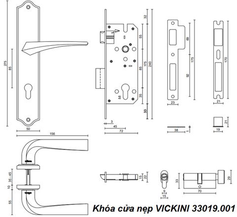 - Khóa cửa nẹp VICKINI 33019.001 MSN ken xước mờ, ruột chốt