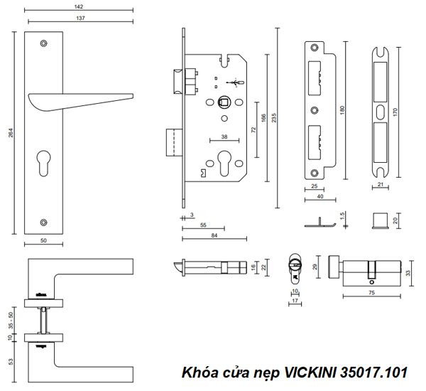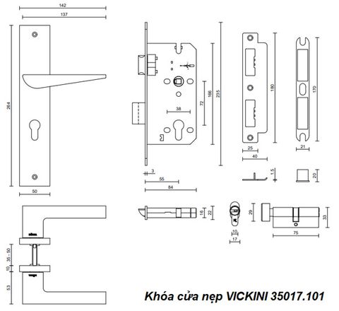 - Khóa cửa nẹp VICKINI 35017.101 MSN ken xước mờ
