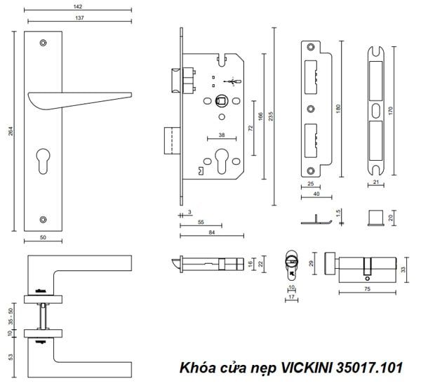 💡 Khóa Cửa Nẹp VICKINI 35017.101 rất phù hợp với các cửa kim loại, gỗ, và nhựa có độ dày từ 35mm đến 50mm và độ rộng đố cửa trên 90mm. Sản phẩm này thích hợp sử dụng cho cửa phòng ngủ, cửa phòng tắm, cửa phòng khách, cửa thông phòng hoặc cửa cần độ bảo mật cao.
