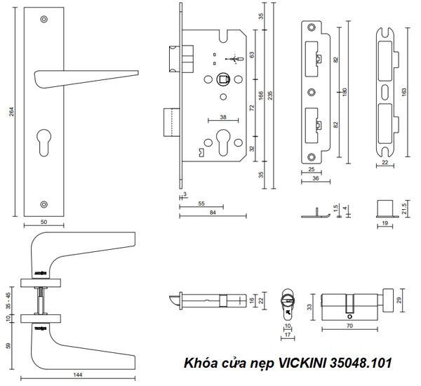 💡 Khóa Cửa Nẹp VICKINI 35048.101 được thiết kế đặc biệt dành cho các loại cửa có độ dày từ 37–45mm và đố cửa lớn hơn 90mm, đảm bảo phù hợp với cả cửa nhà ở dân dụng lẫn công trình văn phòng cao cấp. Lựa chọn hoàn hảo cho người dùng yêu cầu cả an ninh và thẩm mỹ.