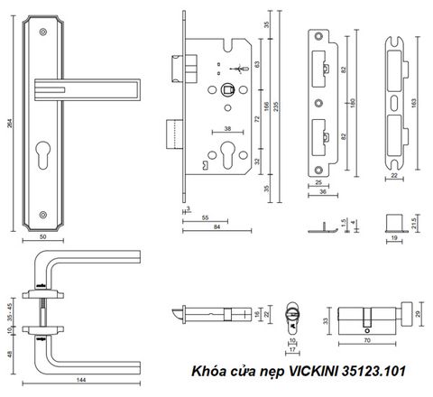 💡 Khóa Cửa Nẹp VICKINI 35123.101 rất phù hợp với các cửa kim loại, gỗ, và nhựa có độ dày từ 37mm đến 45mm và độ rộng đố cửa trên 90mm. Đây là sự lựa chọn lý tưởng cho cửa phòng ngủ, cửa phòng khách, cửa phòng tắm, cửa chính hoặc cửa thông phòng.