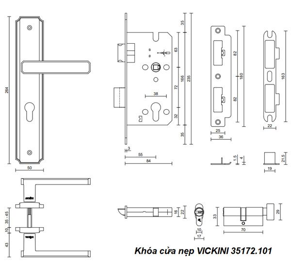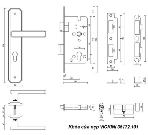 💡 Khóa Cửa Nẹp VICKINI 35172.101 rất phù hợp với các cửa kim loại, gỗ, và nhựa có độ dày từ 37mm đến 45mm và độ rộng đố cửa trên 90mm. Đây là lựa chọn lý tưởng cho các cửa phòng ngủ, phòng khách, cửa chính và cửa thông phòng trong ngôi nhà của bạn.