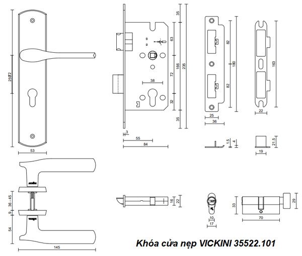 - Khóa cửa nẹp VICKINI 35522.101 OBP đen mờ, ruột chốt
