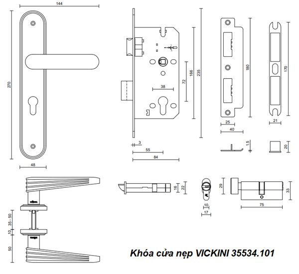 - Khóa cửa nẹp VICKINI 35534.101 MSN ken xước mờ